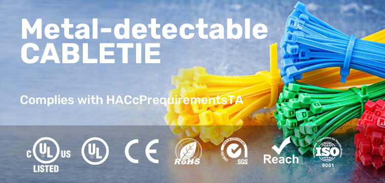 Metal detectable cable ties are specifically designed for the food, beverage, and pharmaceutical industries, meeting HACCP requirements to enhance safety and quality. With embedded metal particles for easy detection, these ties significantly reduce contamination risks, making them ideal for food processing and medical applications.